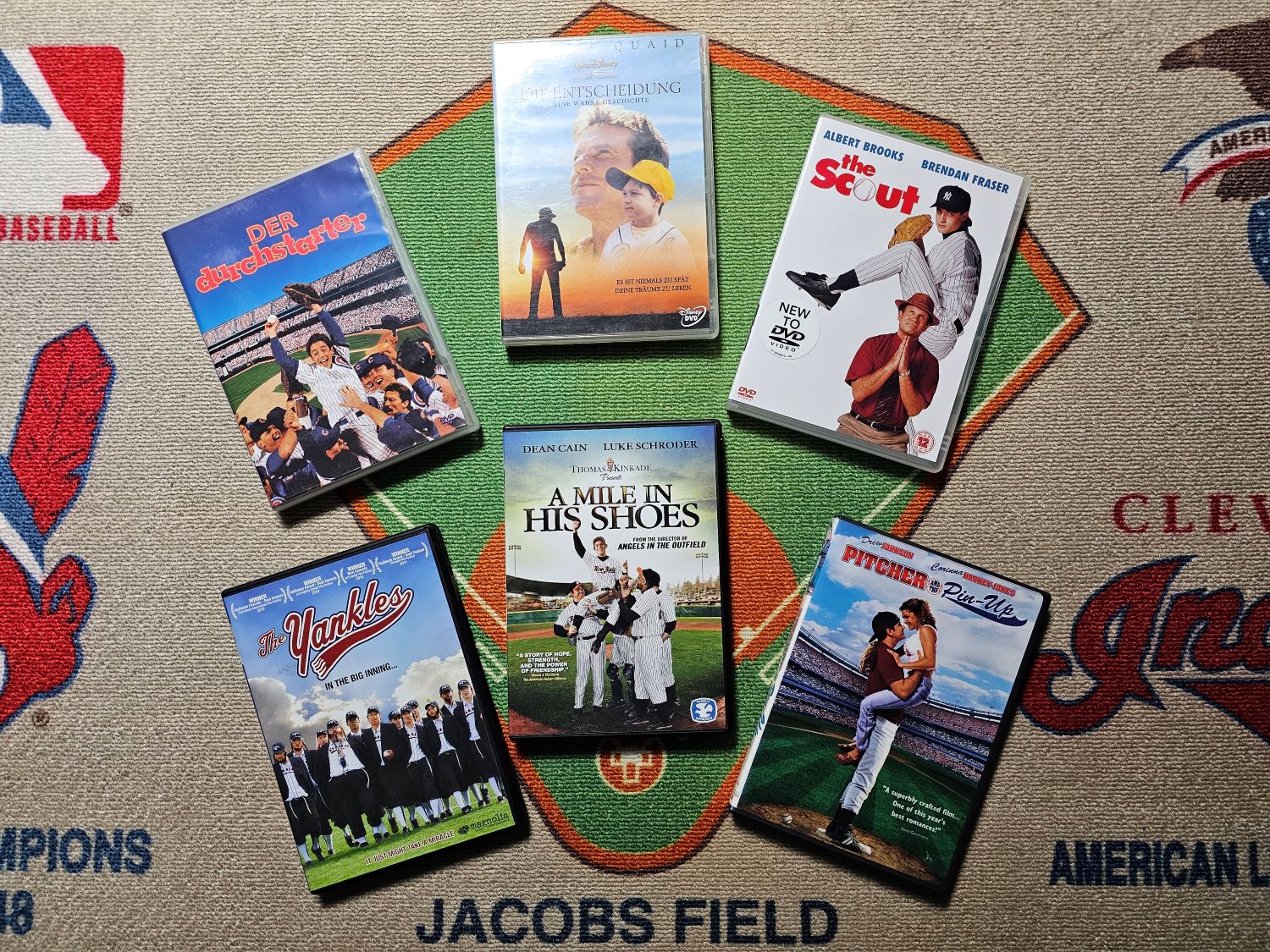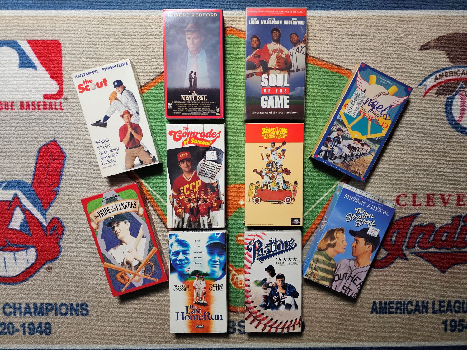 US-VIDEOS: THE SCOUT (1994) * THE NATURAL (1984) * SOUL OF THE GAME (1996) * ANGELS IN THE OUTFIELD (1951) * THE COMRADES OF SUMMER (1992) * THE BINGO LONG TRAVELING ALL-STARS & MOTOR KINGS (1976) * THE PRIDE OF THE YANKEES (1942) * THE LAST HOME RUN (1996) * PASTIME (1990) * THE STRATTON STORY (1949)
